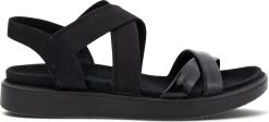 De zwarte ECCO Flowt sandalen zijn een uitstekende keuze wanneer je op zoek bent naar comfortabele en stijlvolle schoenen voor de zomer. De sandalen zijn gemaakt van leer dat is vervaardigd in Ecco’s eigen duurzame leerlooierij. De voering van leer biedt zachtheid en heeft een ademend vermogen. Het voorgevormde voetbed zorgt ervoor dat je de hele dag met veel plezier op deze schoenen kan lopen. De lichte zool met de innovatieve Ecco Fluidform-technologie biedt veel demping en flexibiliteit. Dankzij de elastische banden sluiten de sandalen perfect aan de je voeten en hebben deze schoenen een goede pasvorm. Dit stijlvolle ontwerp in combinatie met de innovatieve uitvoering maakt de Ecco Flowt sandalen ideaal voor de ondernemende vrouw die graag op pad gaat!
