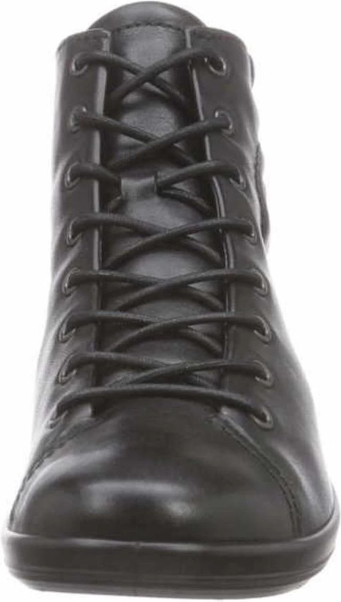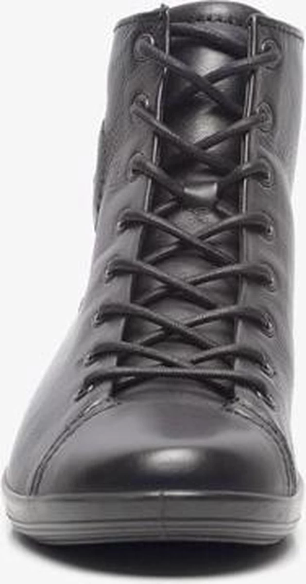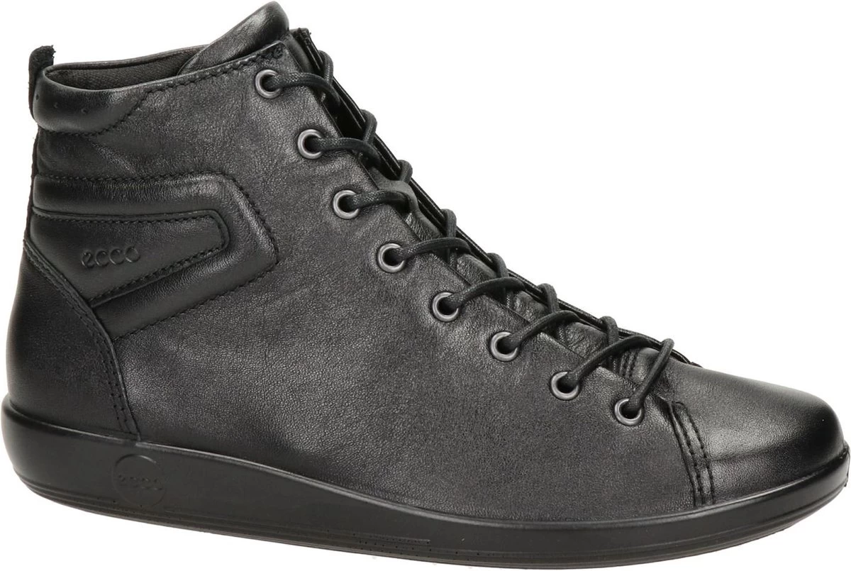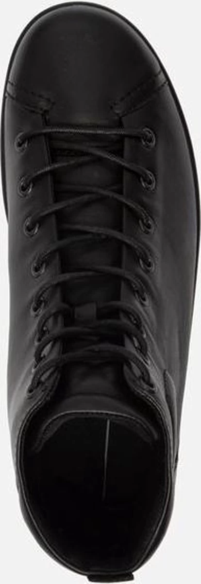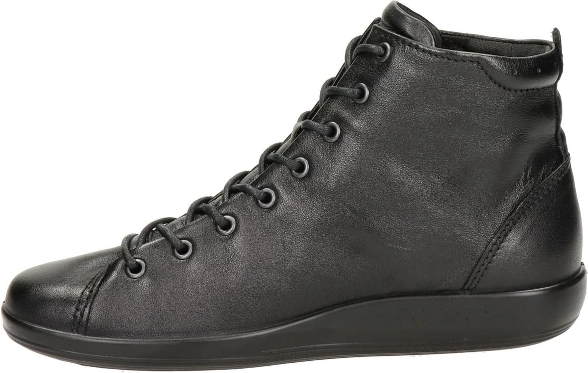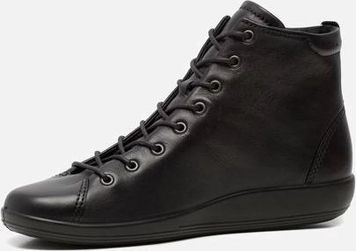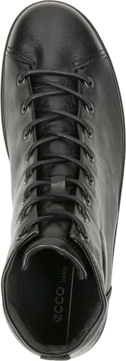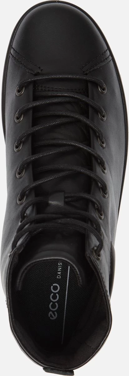 Zwarte Ecco Soft 2.0 hoge sneakers gemaakt van zacht, ademend leer. De voering en het voetbed zijn gemaakt van textiel. Dankzij het Ecco Comfort Fibre System wat op deze schoenen is toegepast, blijven de voeten koel en fris tijdens het lopen op deze sneakers. Door middel van veters zijn de schoenen te sluiten. De PU zool heeft een dikte van 2 centimeter en is licht en flexibel. De schoenen zijn te combineren bij veel verschillende outfits en geven extra bescherming en comfort aan de voeten. Het voetbed van de Ecco Soft 2.0 hoge sneakers is uitneembaar!